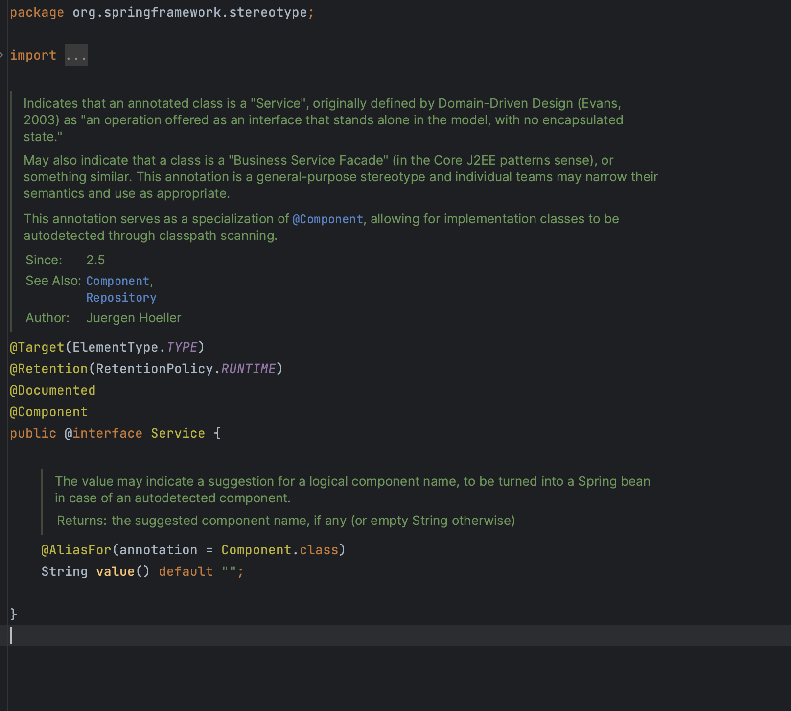 따라서 서비스 계층에 대해 @Component 또는 @Service 중에서 선택하는 경우 @Service가 분명히 더 나은 선택이다.