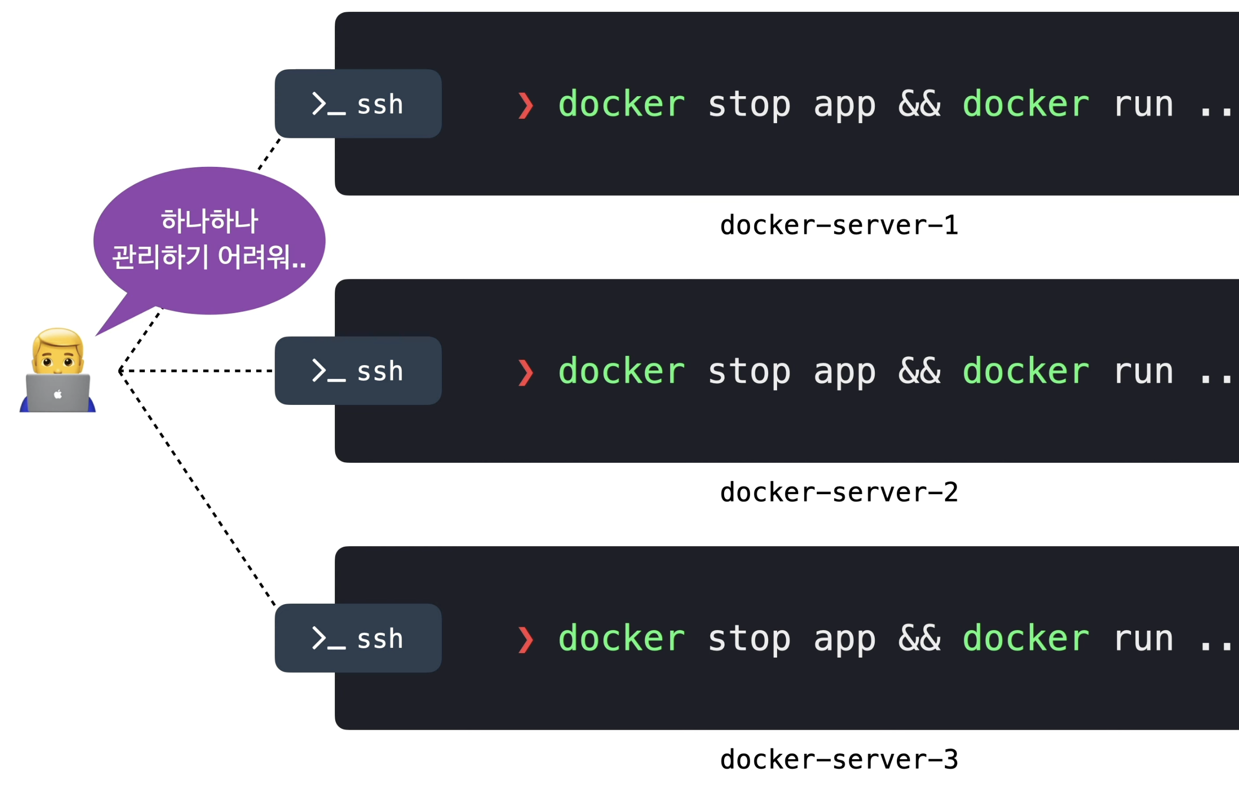 Docker의 사용량이 증가함에 따라 컨테이너 관리가 쉽지않음