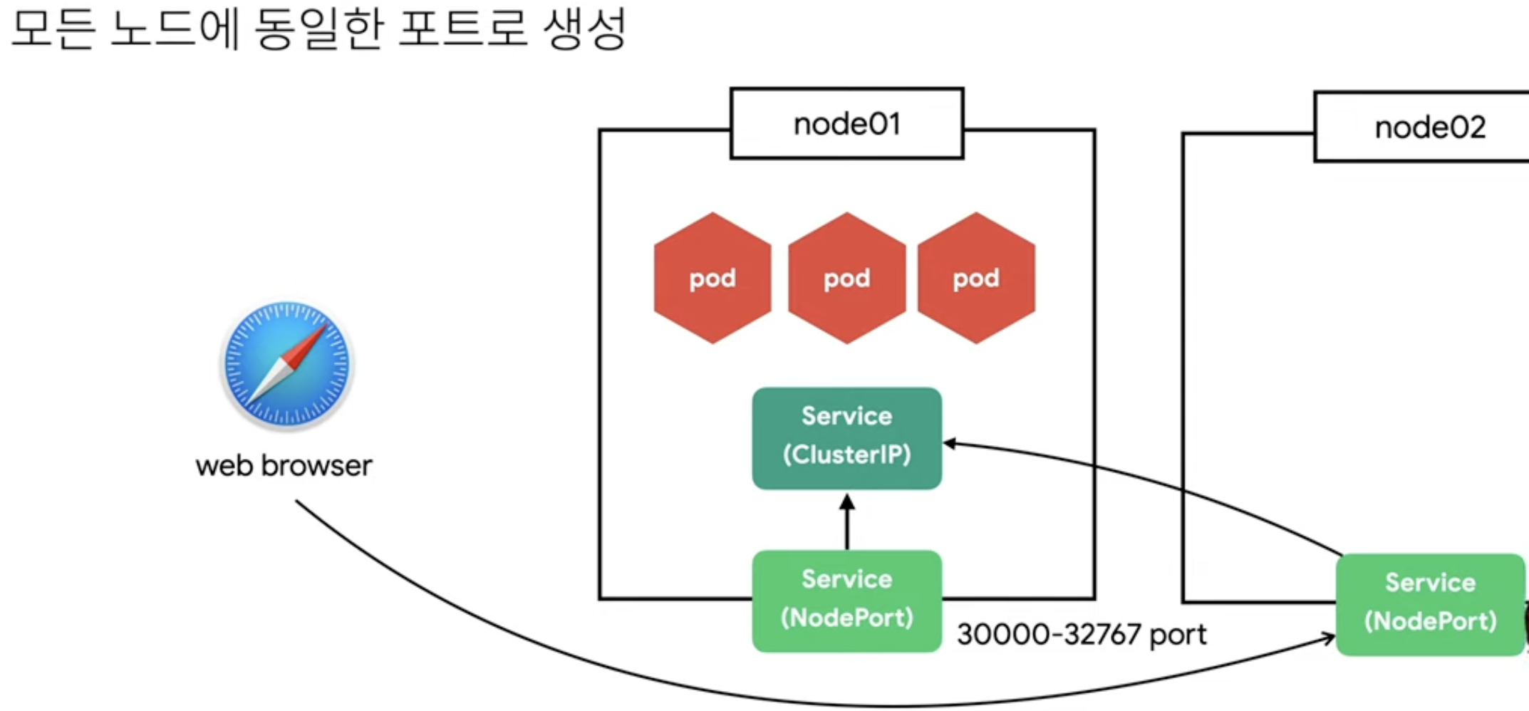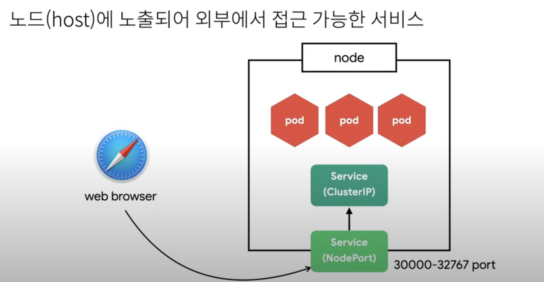 외부에서 연결 할 수 있는 NodePort가 존재한다