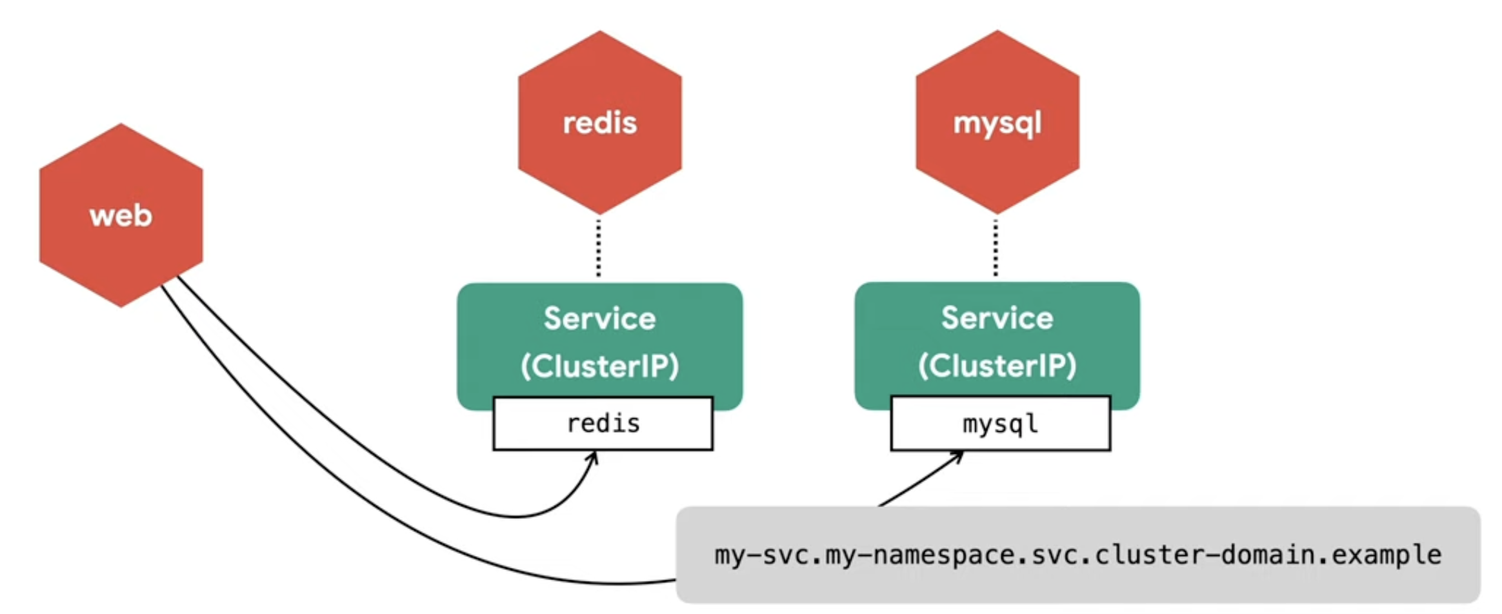 클러스터 내부에서 서비스 연결 할 때는 DNS를 이용한다