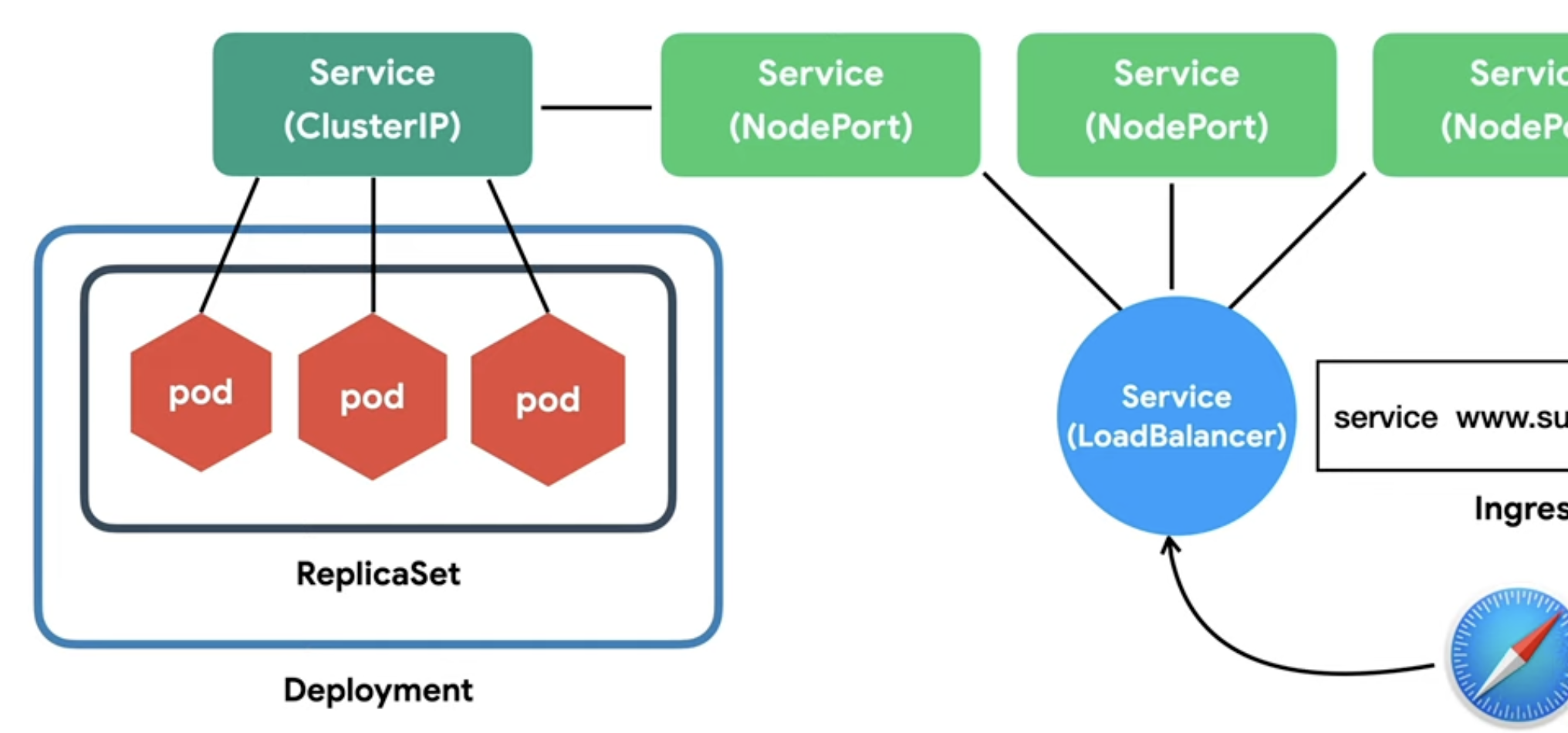 Web browser -> Service(NodePort) -> Service(ClusterIP)