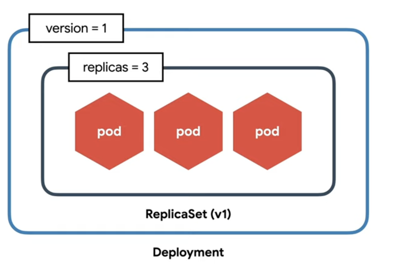 Deployment를 만든다 그러면 안에 ReplicaSet과 그 내부에 pod이 있는 거고,