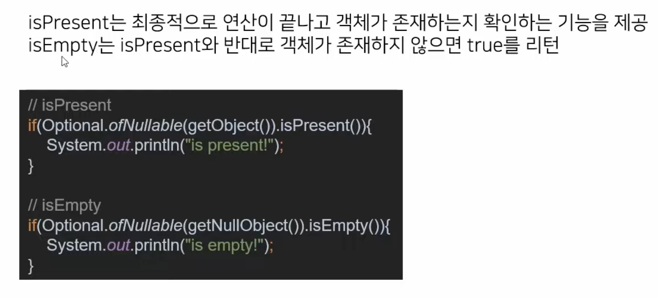 Optional 에는 객체를 다룰 수 있는 다양한 메소드가 있다