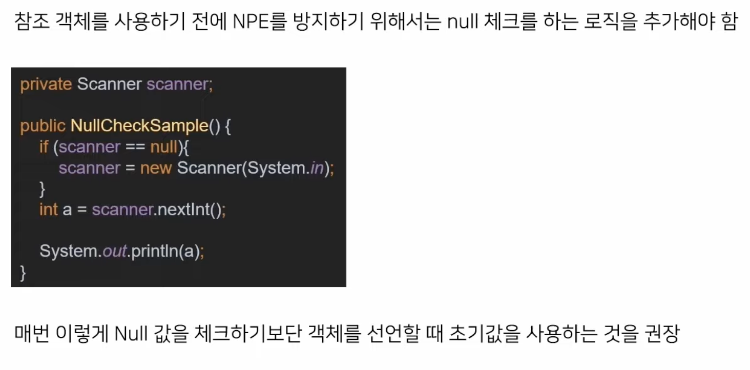 NullPointException Case -> null 객체의 메소드나 필드 접근, null throw하는 경우
