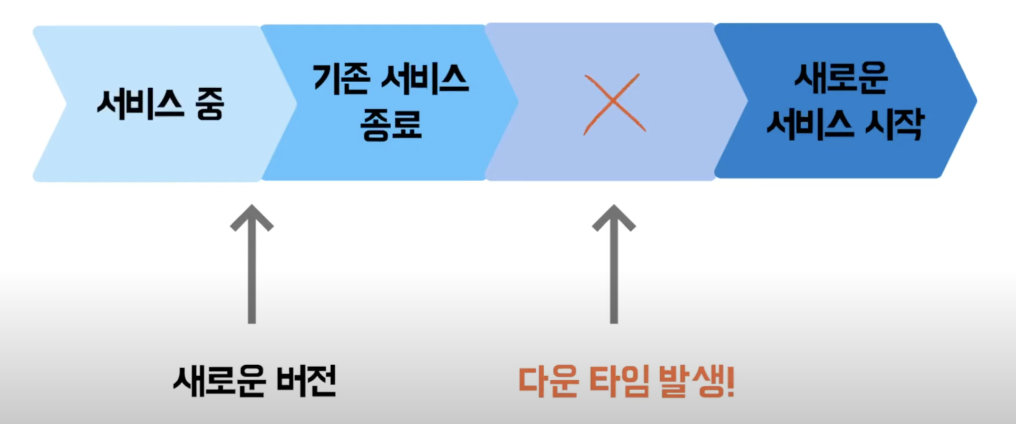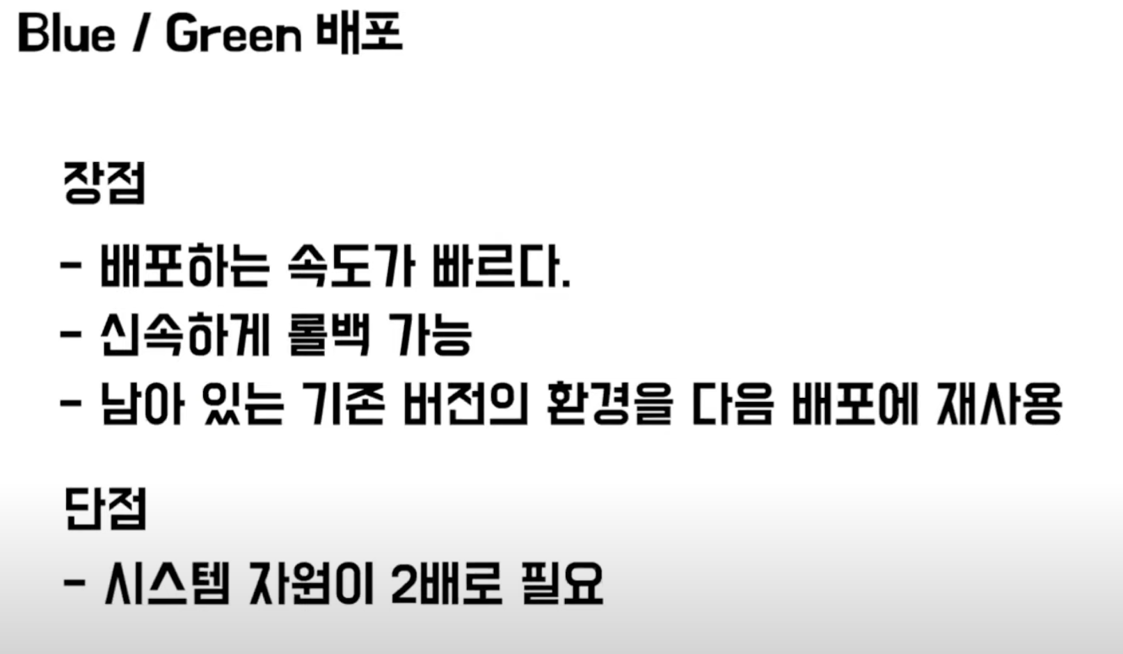 대기중인 그린 서버에게 일단 신버전 배포 업데이트해서 그 서버를 사용,
