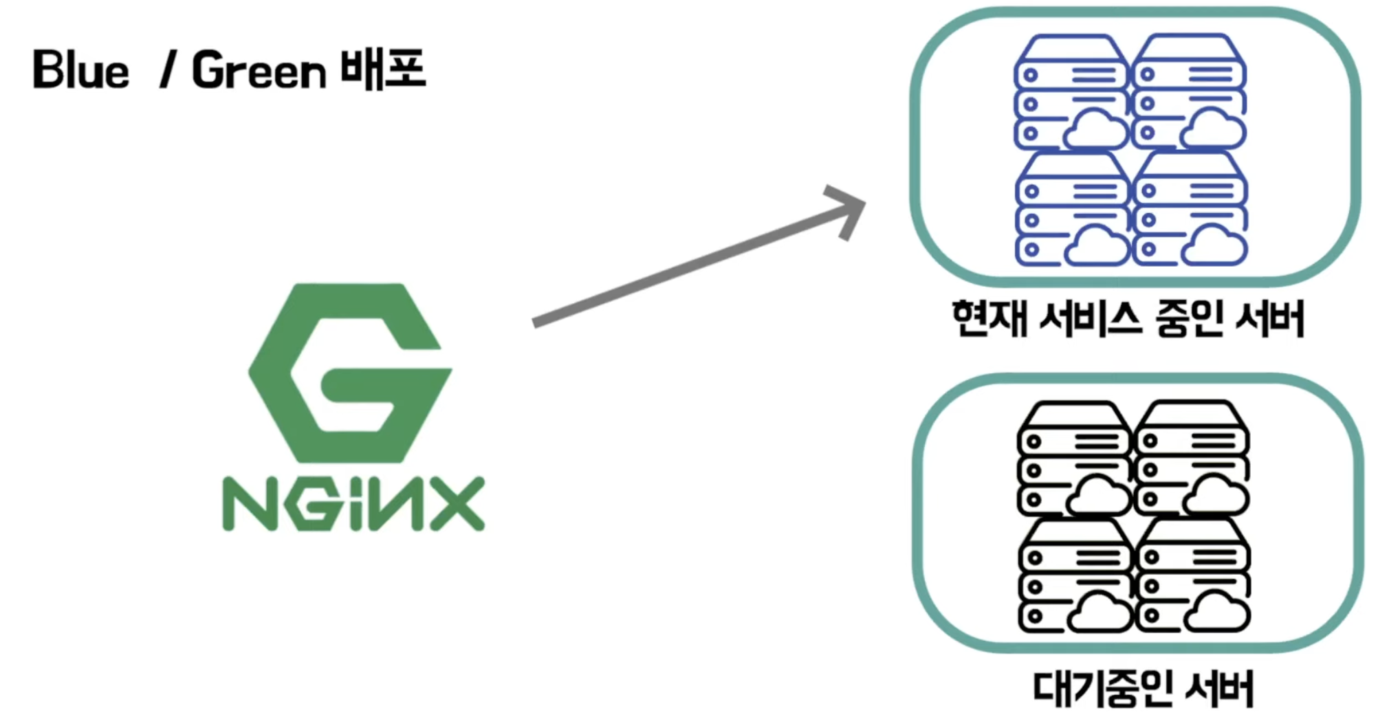 그 후에 구 버전이였던 블루 서버는 다음번 배포 시 업데이트 할 그린서버가 되는 것