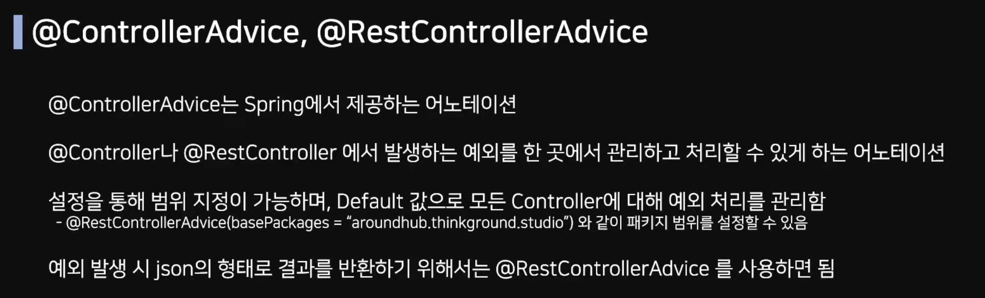 @ControllerAdvice 를 통한 모든 Controller 예외 처리 // 모든 컨트롤러에서 발생할 예외 정의