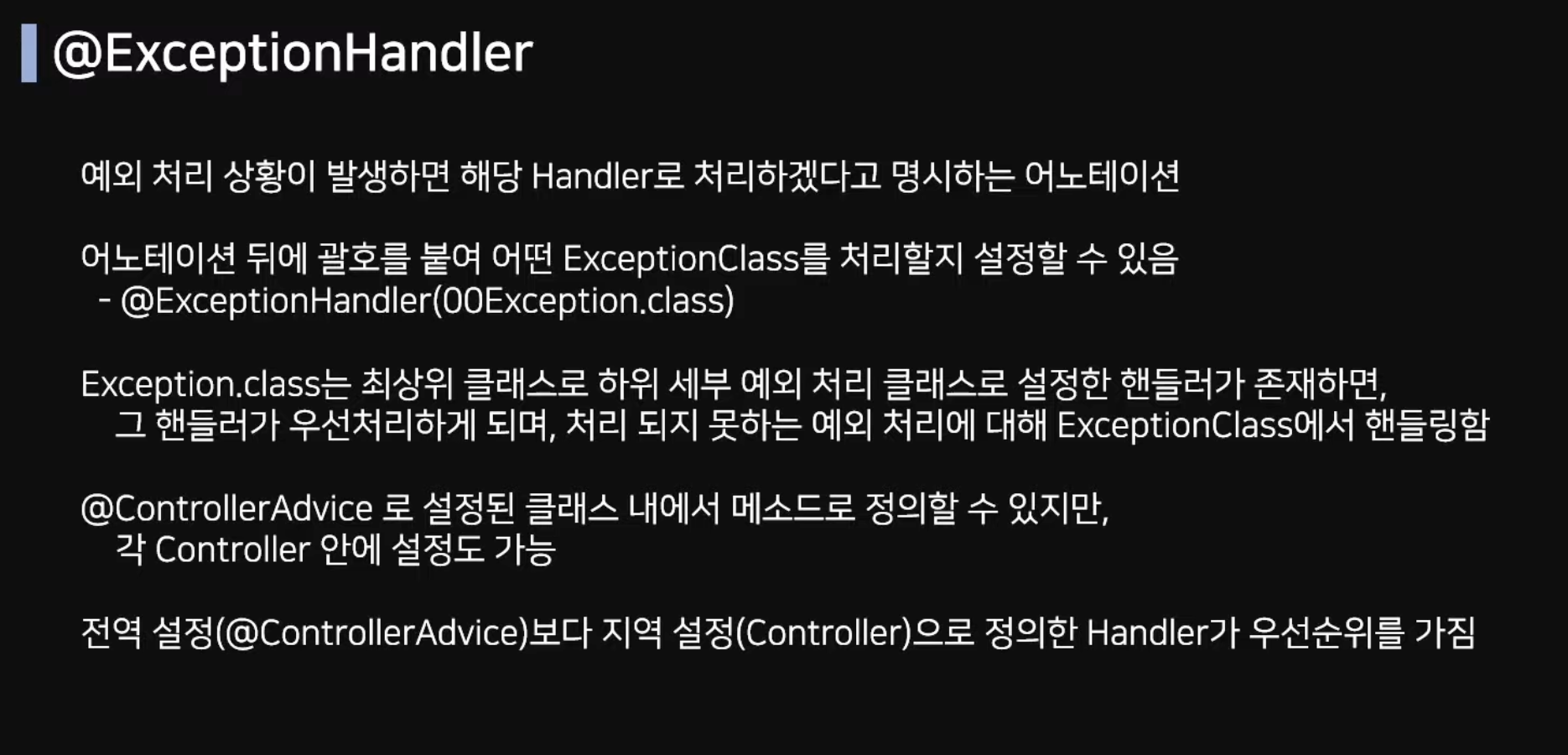 @ExceptionHandler 를 통한 특정 Controller 예외처리 // 발생하는 예외마다 처리할 메소드를 정의