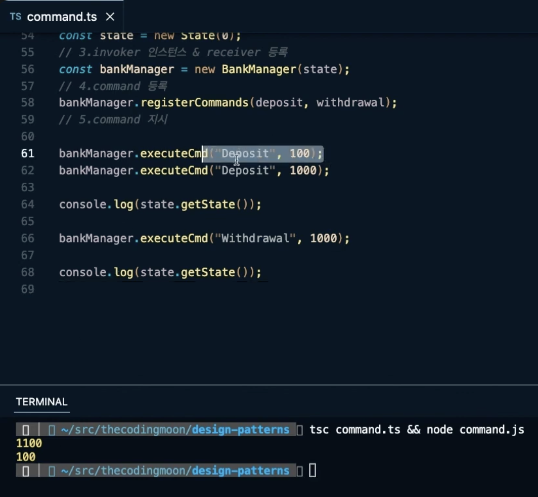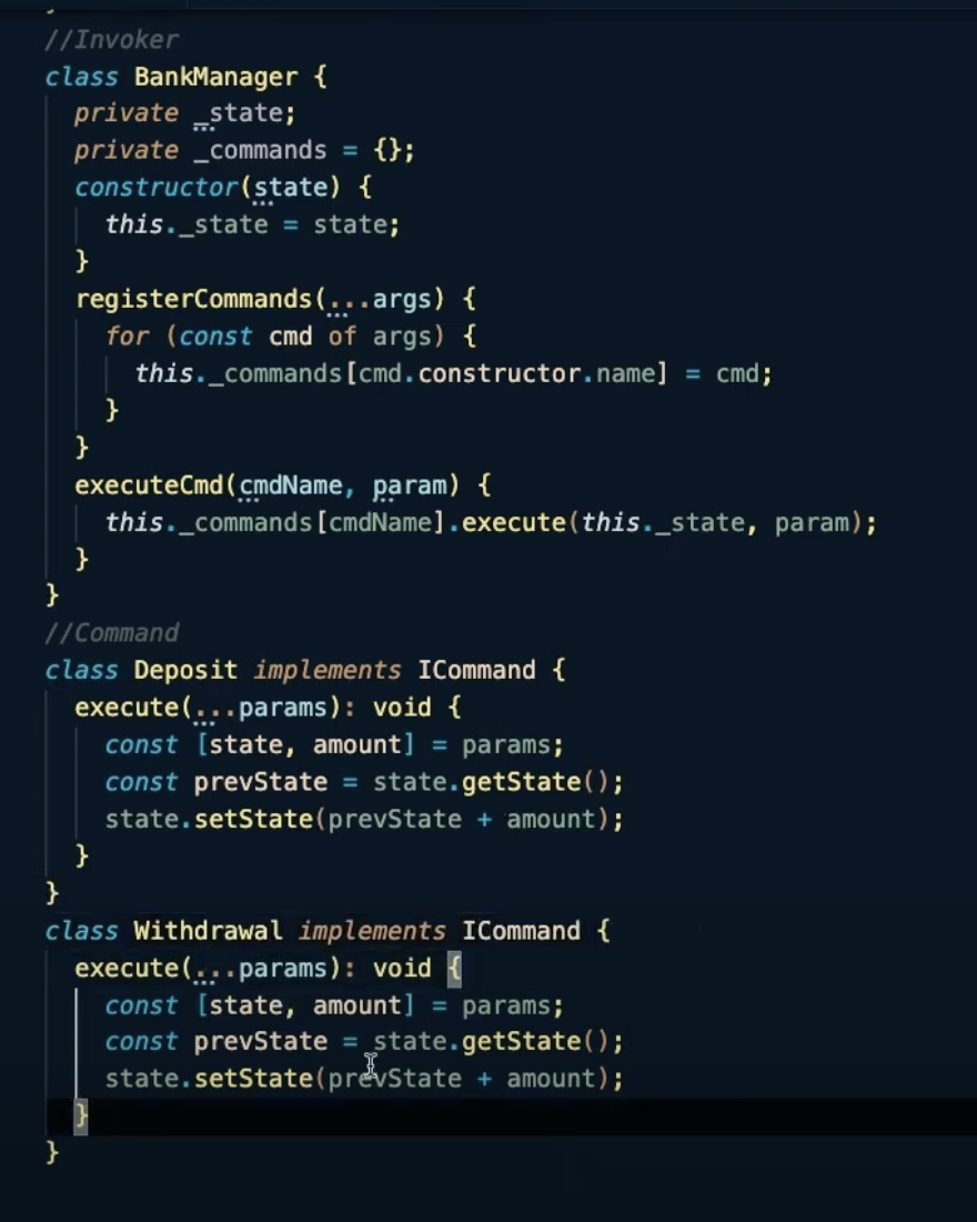 JavaScript Command The Command pattern encapsulates actions as objects. Command objects allow for loosely coupled systems by separating the objects that issue a request from the objects that actually process the request. These requests are called events an