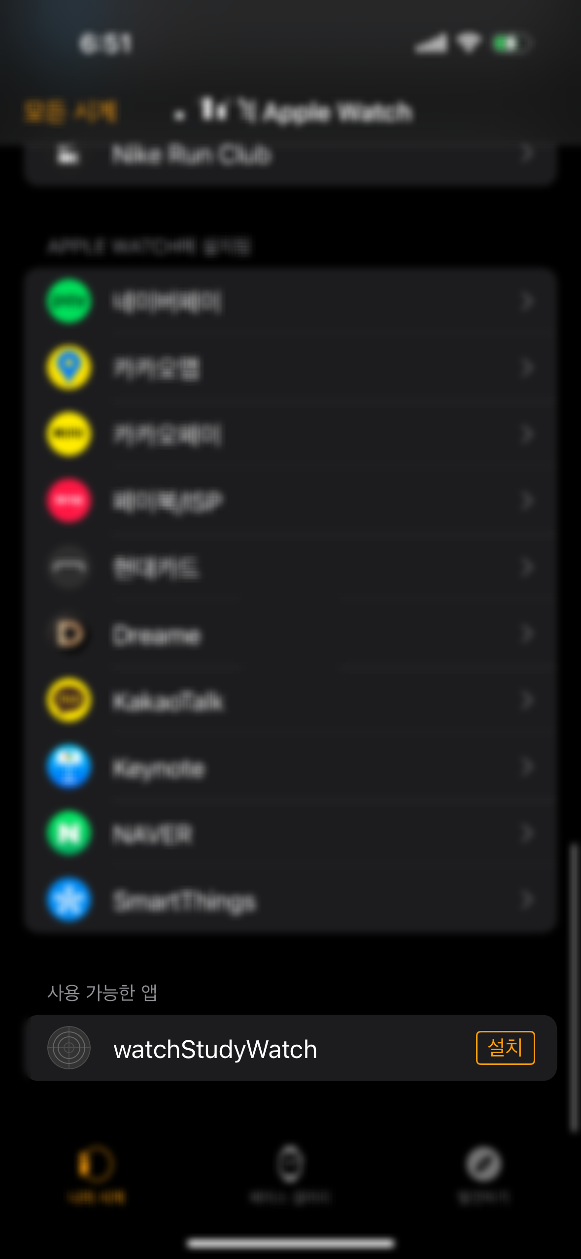 3. 아이폰에서 Watch 앱을 켜보면 이렇게 워치에서 설치할 수 있는 앱이 나온다.